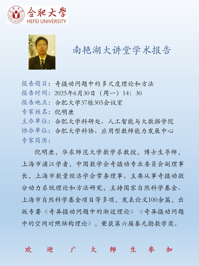 【南艳湖大讲堂】奇摄动问题中的多尺度理论和方法