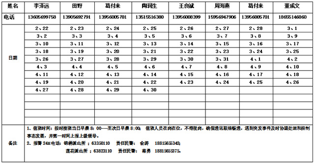 保卫处2025年3--4月值班表