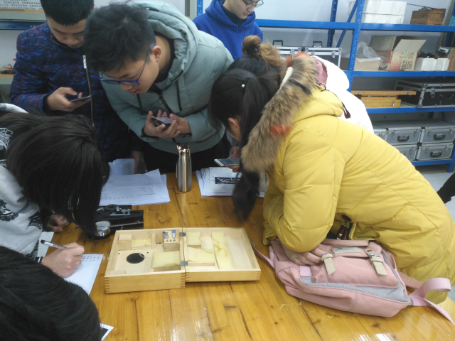 本实验室面向机械类专业开设《互换性和测量技术基础》课程的相关实验。该课程涉及机械产品的几何量公差(精度设计)与几何量检测两方面内容,前一部分内容主要通过课堂教学来完成,后一部分的内容主要通过实验教学来完成。通过实验使学生了解常用测量器具的工作原理,学会使用常用的计量器具,掌握各种典型几何量的检测方法,以及各种测量误差的数据处理方法,从而具备对机械零件的一般几何量作技术测量的能力。分室面积约110平方米,主要实验仪器设备包括:光切显微镜、工具显微镜、立式光学计、投影万能测长仪、齿轮啮合综合测量仪、万能测齿仪,固定资产约70万元。实验室主要承担的教学任务:孔、轴误差测量、形位误差测量、圆柱螺纹测量、圆柱齿轮测量等实验,年均约为1600人时数。