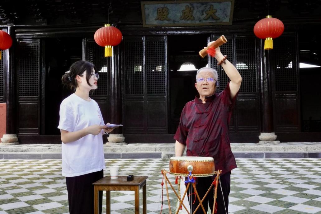 下午,团队成员来到寿县老文化馆,专访寿州大鼓省级项目非遗传承人魏明华老先生和口技项目非遗传承人李勋老师。同工艺传承一样,曲艺传承也面临着青黄不接的困境。一方面,曲艺行业从业者要培养耐力,要能静下心来打磨作品;另一方面,非遗传承需要全社会关注,学艺要从娃娃抓起,要让更多曲艺作品和课程走进校园,让孩子们从了解曲艺到热爱曲艺,进而传承曲艺。