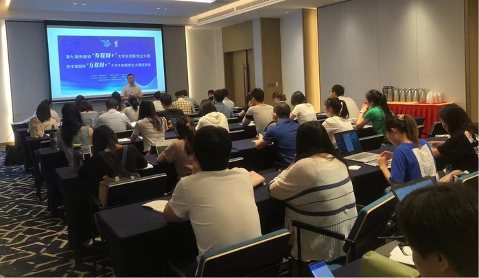 本次大赛自启动以来,吸引了全校近2000名同学共310支项目团队参加。备战省赛正值暑期,我校师生克服困难,精心组织,开展路演答辩辅导和重点项目打磨等培训活动10余场,邀请校内外专家30余人次为入围省赛项目进行深入培训和指导,优化项目内容,打磨项目细节,为竞赛取得好成绩奠定了基础。