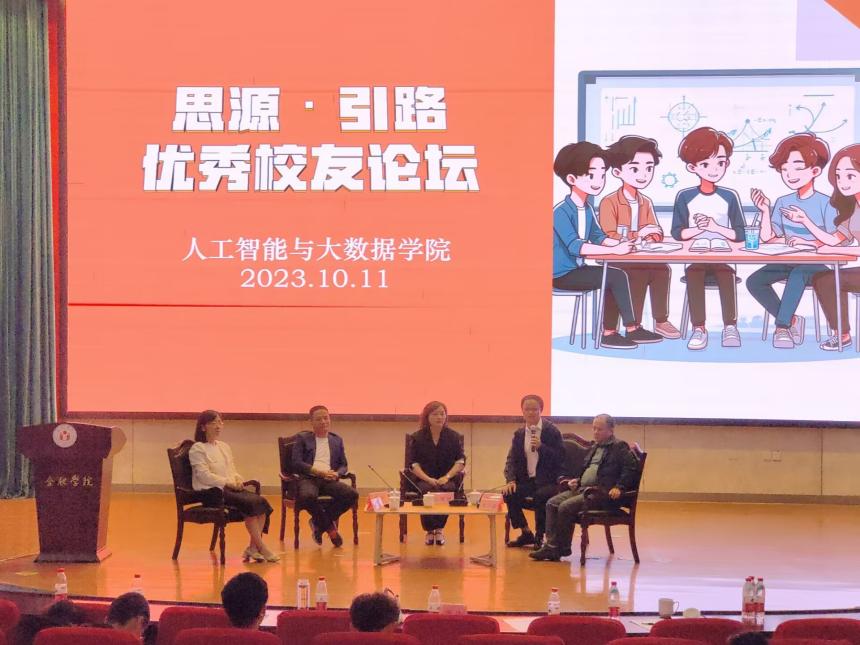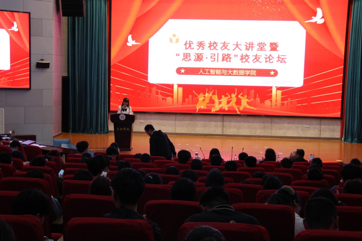 2023年10月11日下午2:00,人工智能与大数据学院在图书馆报告厅A厅成功举办了一场精彩纷呈的优秀校友大讲堂暨“思源·引路”校友论坛。汪珊珊、倪少君、卢辉和周炜四位杰出的校友受邀参加,院长余海峰、院党委副书记姚蓓蓓、辅导员及三百多名学生现场聆听,活动由辅导员王桂云老师主持。