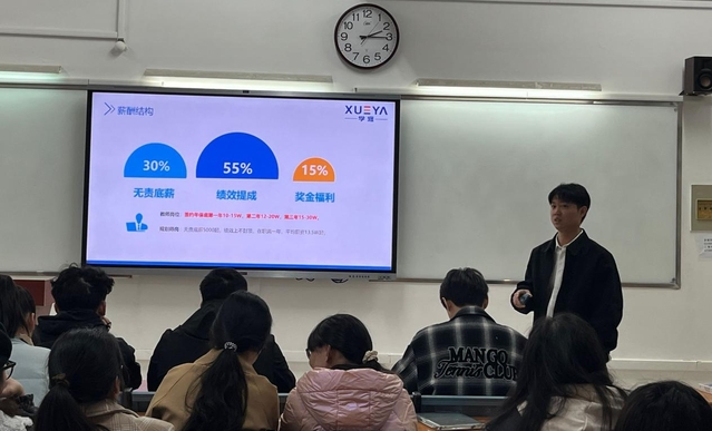 宣讲会伊始,公司代表以充满激情的开场白拉开序幕,并对公司的概况进行了详细介绍,包括发展历程、业务范围以及未来发展规划,使学生们对学涯教育有了全面的了解。