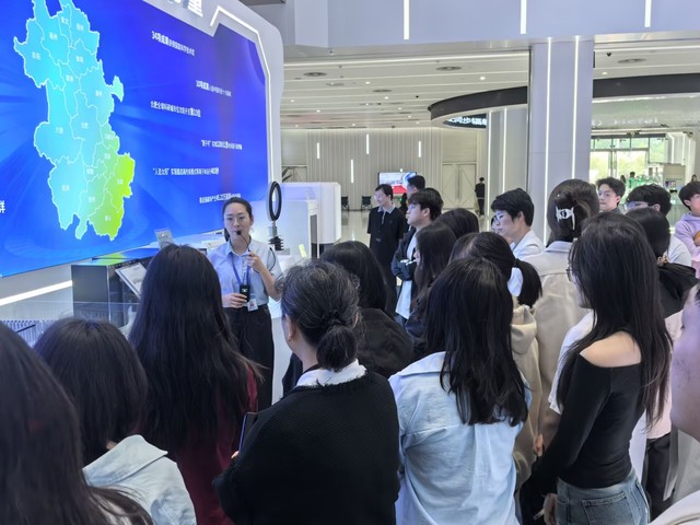 在创新馆内,解说员带领学员们重点参观了“集成电路与芯片技术”主题展厅。通过实物展示、动态演示及影像资料,学员们深入了解了安徽近年来在芯片领域的突破性成就。例如,合肥晶合集成电路有限公司在12英寸晶圆代工领域的规模化量产能力,为国产芯片制造产业链注入强劲动力;中国科学技术大学微电子学院在先进芯片设计、第三代半导体材料研发等方面的前沿成果,展现了产学研深度融合的创新生态。学员们认真聆听讲解,结合展板内容记录关键技术细节,并不时就芯片产业现状与未来发展与解说员展开交流,现场互动氛围热烈。