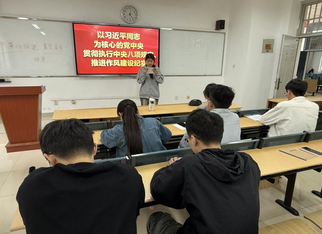 5月9日,旅游与会展学院学生第二党支部于博学楼A座104教室举办深入贯彻中央八项规定精神学习教育专题读书分享会。活动由欧阳雯凤同志主持,支部党员与积极分子踊跃参与,聚焦中央八项规定精神及其实施细则,深刻感悟新时代加强党的作风建设的重大意义。