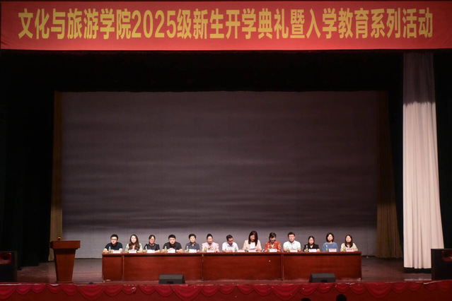 9月10日上午,华体汇体育手机app下载文化与旅游学院2025级新生开学典礼在一区致用礼堂顺利举行。出席本次典礼的有文化与旅游学院党委书记丁增武、院长查金萍、党委副书记张爱萍、副院长张体云、各系主任、专业负责人、硕士点负责人、新生辅导员以及2025级全体本科生、研究生新生。