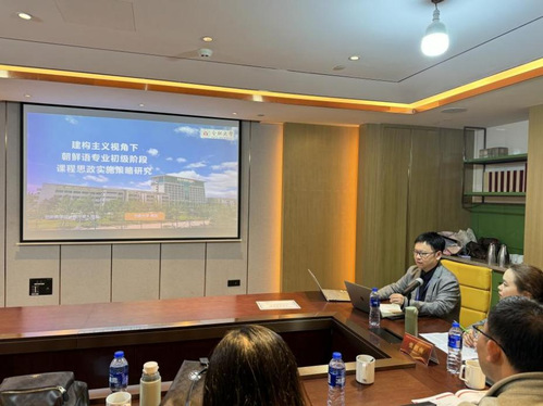 本届论坛暨年会由主旨发言、分论坛、小组汇报构成。在10月16日上午的大会主旨发言中,广东外语外贸大学南国商学院副校长王铭玉教授、广西国际商务职业技术学院校长刘杰英教授、北京师范大学外文学院院长苗兴伟教授、马鞍山师范高等专科学校张勇军教授、巢湖学院慕媛媛教授五位专家围绕教育现代化、职业教育、文化传播、英语教育、数智化时代的语言研究等多元主题发表了各自的前沿主张。16日下午,平行分论坛分七个小组同时展开,我院东语系主任周岩老师在非通用语种教学与研究分论坛中进行了《朝鲜语专业初级阶段课程思政实施策略研究》的报告。周老师结合建构主义理论探讨了朝鲜语专业初级阶段课程思政融入的有效教学策略,他指出朝鲜语教育应该超越语言技能的训练,融入社会主义核心价值观教育,并且提出了整合资源、创造学习情境、促进合作与探究学习、增强社会参与和跨部门协作等策略,从而提升学生的批判性思维和价值观判断能力,实现课程思政的教育目标。