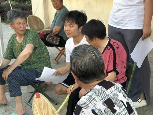 调研期间,伴随着夏日的微风,“合语筑梦”乡村振兴团在指导老师张正华的带领下,围绕教育、医疗、文化设施、养老等公共服务领域,开展为期两天的实地调研。团队通过入户走访、发放问卷等形式,收集居民对公共服务资源配置的满意度、公共服务需求及改进建议等方面内容,旨在收集第一手资料,为后续分析提供数据支撑。