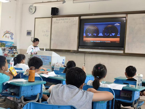 在英文歌曲课堂上,实践队员们精心设计了趣味十足的教学环节。孩子们在实践队员的引导下,通过学唱《Twinkle Twinkle Little Star》《Lemon Tree》等旋律优美、歌词简单的经典英文儿歌,认真地模仿发音、跟读词汇。在了解孩子们对英语的掌握程度有所差异时,队员们一对一帮助孩子们进行英文单词朗读和拼写。轻松活泼的课堂氛围有效降低了语言学习的陌生感,孩子们在欢快的歌声中自然而然地练习了基础英语发音,积累了常用词汇。“合语筑梦”乡村振兴团运用创新性的教学方法,成功将语言学习融入音乐律动,显著提升了孩子们的学习主动性和参与度,为暑期课堂增添了亮丽的异国文化色彩。