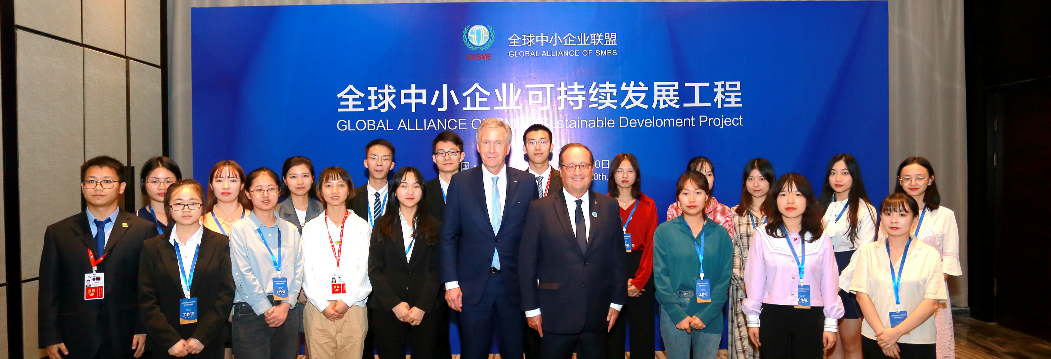 世界制造业大会期间,我院志愿者和德国前总统伍尔夫先生、法国前总统奥朗德先生合影