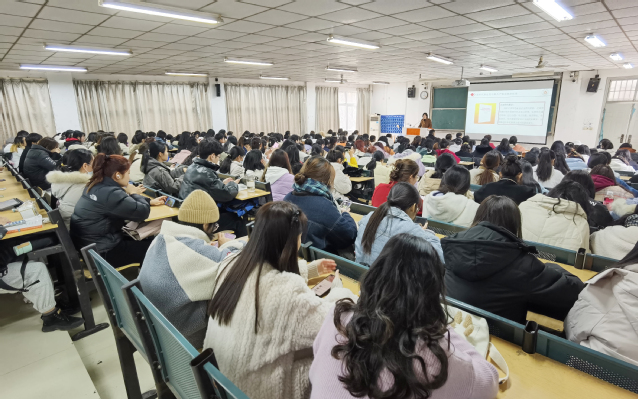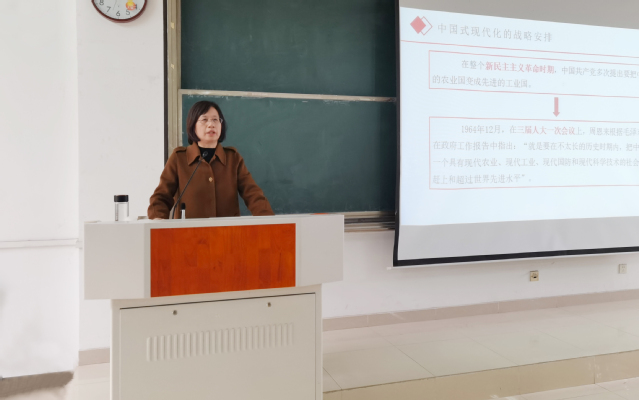 12月5日中午,院长吴春梅以“以中国式现代化全面推进中华民族伟大复兴”为题,为外国语学院师生党员上了一堂生动的思政课。校党委委员、组织部部长白义香,党政办副主任毛小芳,外国语学院党政领导、师生党员和入党积极分子260余人聆听。