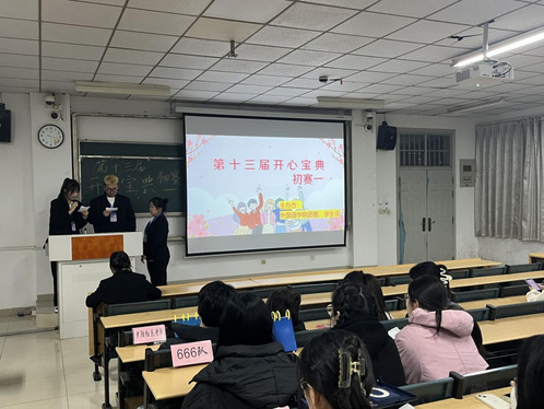 11月14日晚上六点三十分,由外国语学院团委主办的外语文化周第十三届“外语开心宝典”初赛第一场在一期五栋101顺利举办,共有八支队伍参加本次比赛。