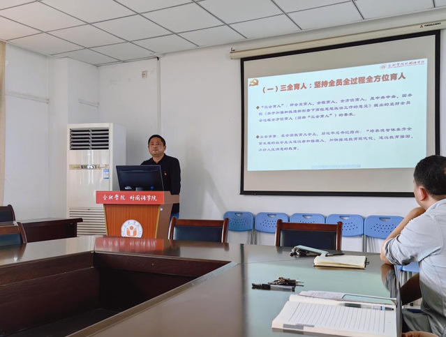 根据学校主题教育理论学习工作安排和《外国语学院学习贯彻习近平新时代中国特色社会主义思想主题教育实施方案》,5月23日下午,外国语学院党委副书记、纪委书记吴孔宝以“聚焦以生为本,强化问题导向,坚持系统观念,推动外国语学院‘三全育人’体系走深走实”为主题,为全体师生党员讲授主题教育专题党课。